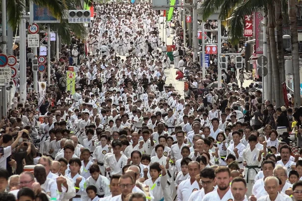 28.10.2025 Día del Karate 2025: Tiñendo las calles de Okinawa de blanco, con espíritu y entusiasmo, más de 3000 personas hicieron una potente actuación de karate