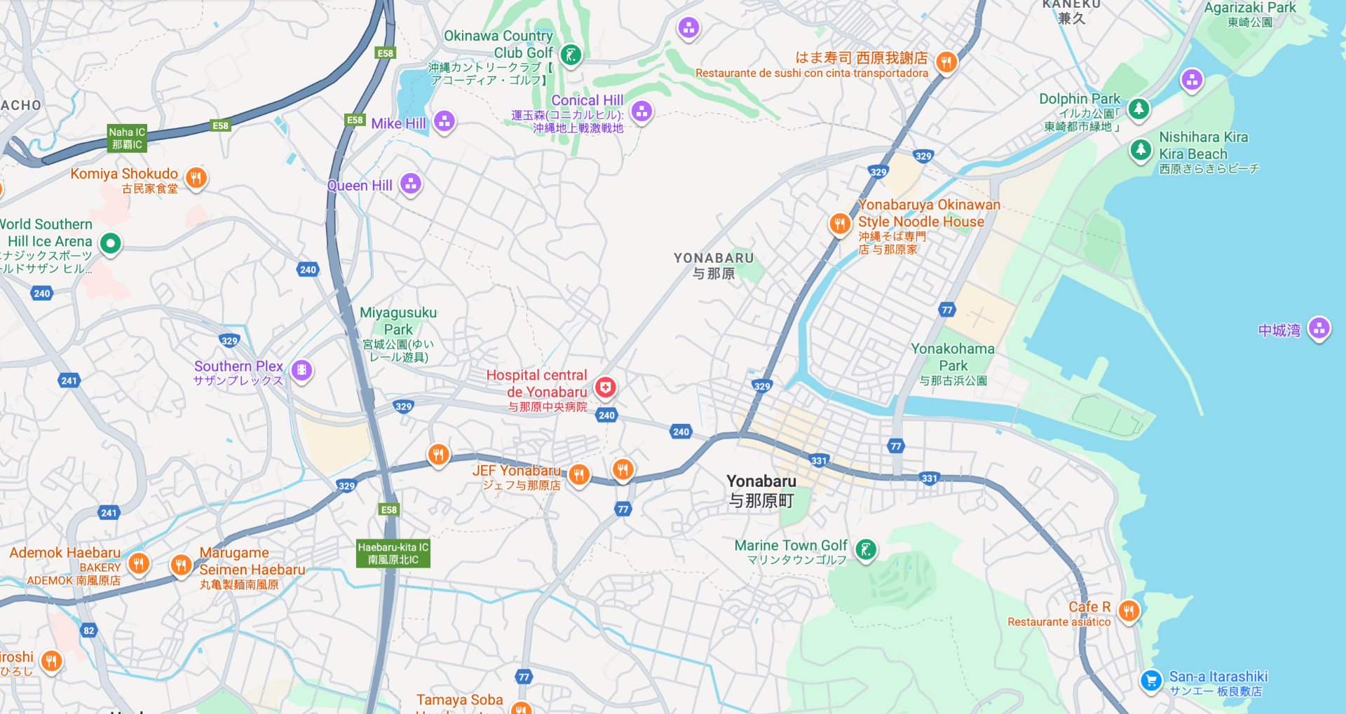 La ubicación actual de donde se encontraba el Hama Udun en Yonabaru (google maps)