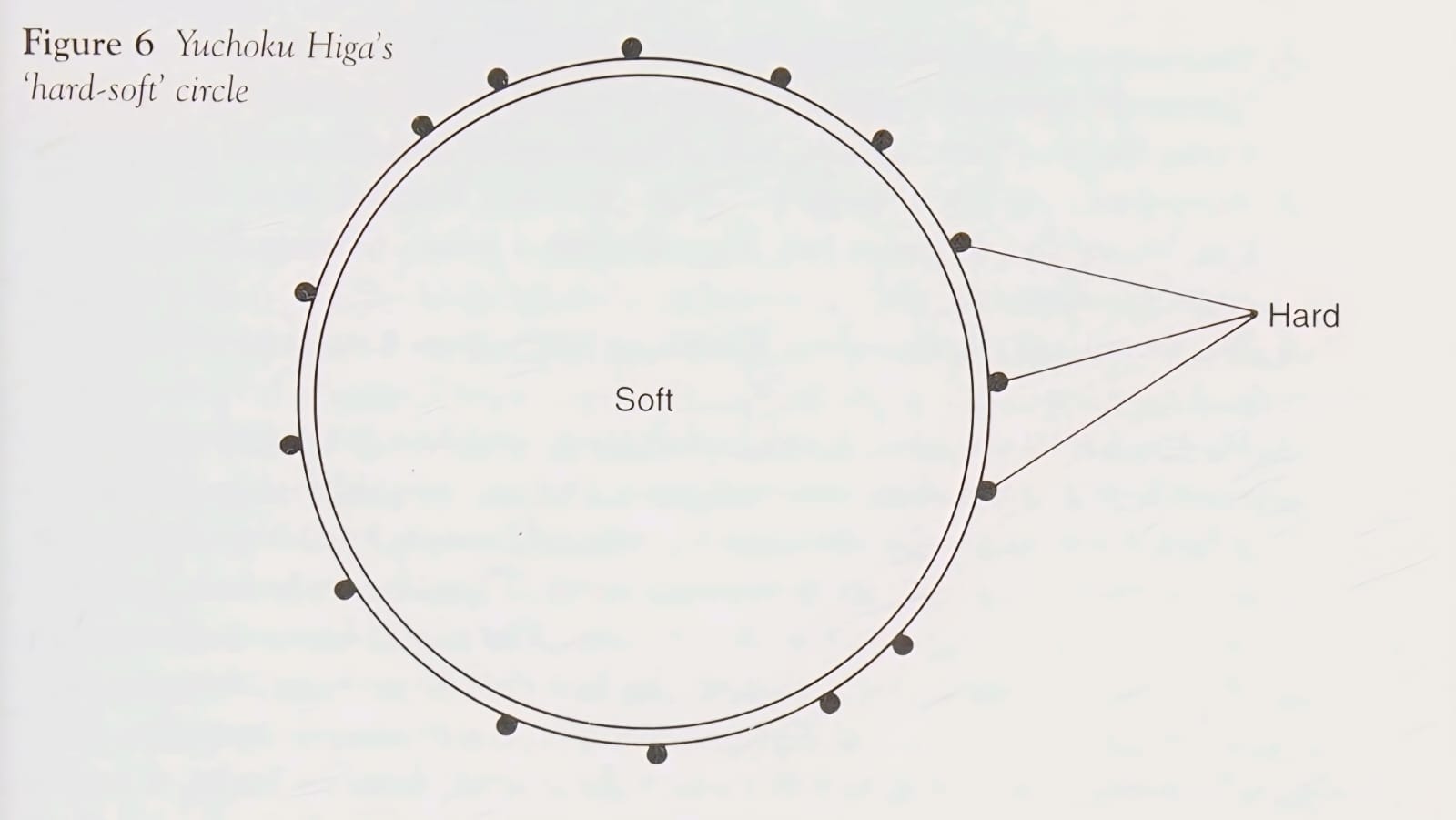 El Shorin-ryu, me dijo Higa, "fue bautizado originalmente por Anko Itosu, no por Choshin Chibana, y es un estilo natural, como caminar por una carretera". Describió su karate como "suave", explicando que el "duro" está bien para los jóvenes, pero no para los de edad madura. En realidad, continuó diciendo, "lo blando contiene lo duro y se representa mediante un círculo con puntos alrededor de la circunferencia; el círculo representa lo "blando", los puntos son lo "duro"; éste es el principio que subyace en todas las artes marciales".